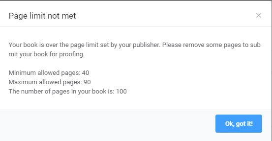 Once the book meets the requirements of the publisher, you will be allowed to proceed. If you are sure you want to proceed, click the Yes button. | ![]() |