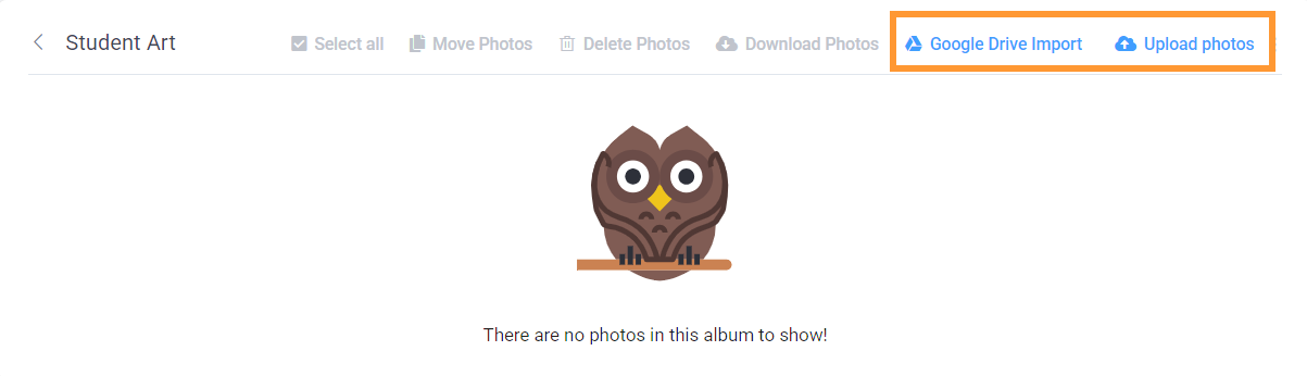 Note: You can create albums and upload photos from your local drive directly in the page editor as well.