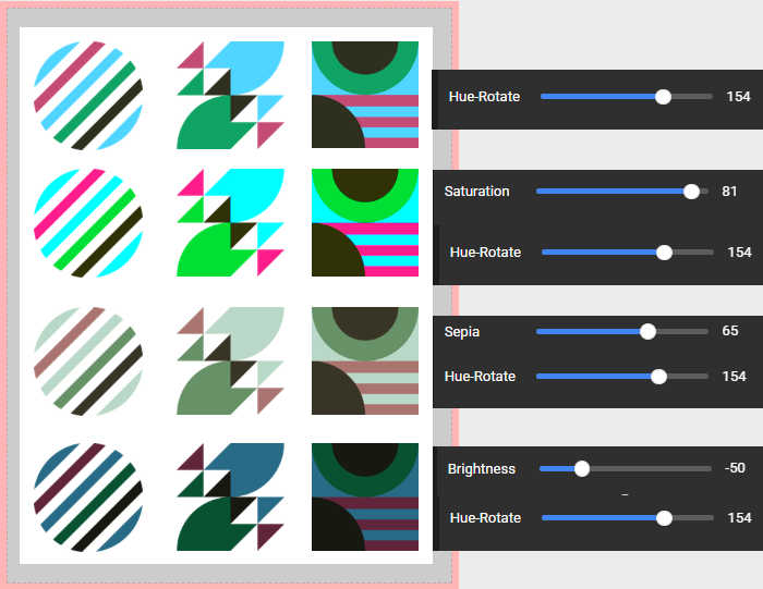 Drag the element to your page, then access the Image FX option in the top menu. Use the Hue-Rotate slider to change the color, then play with brightness, contrast, saturation, greyscale and sepia options to achieve the desired shade.