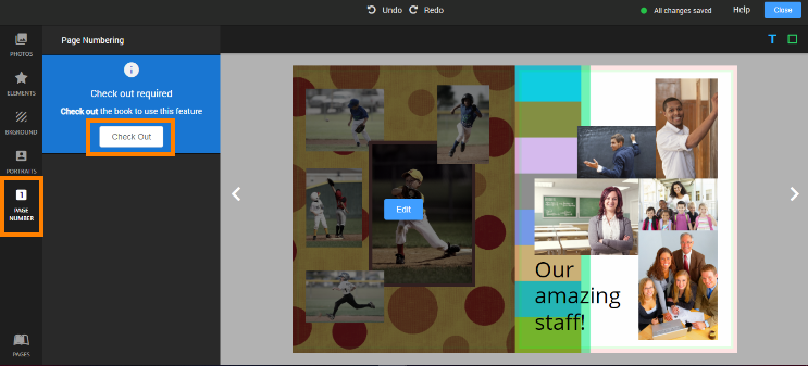 To add page numbers, open any page in the Page Editor. Once launched, select Page Number from the left-hand menu. You will be prompted to Check Out the book.